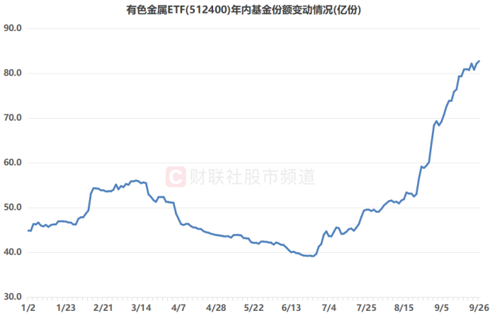注:有色金属相关ETF近1个月基金份额变动情况(基金规模、份额截至9月26日,其余数据截至9月29日)