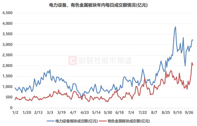 以行业板块统计,电子板块在节后仍获资金重点关注,周内日均成交额5427亿元,整体维持节前量能水平,电力设备、有色金属、计算机板块日均成交额规模也居前。其中,电力设备、有色金属板块节后热度较节前有明显攀升,其中,电力设备板块节后2日成交额均超3000亿元,在年内行情中位居第4、5名,有色金属板块成交额则于节后首日创年内新高。