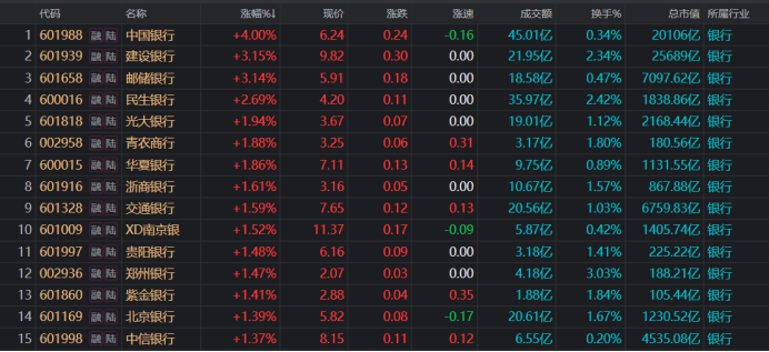 注:11月20日涨幅居前的银行股(截至11月20日收盘)中行市值超越茅台,工行缓步刷新高点
