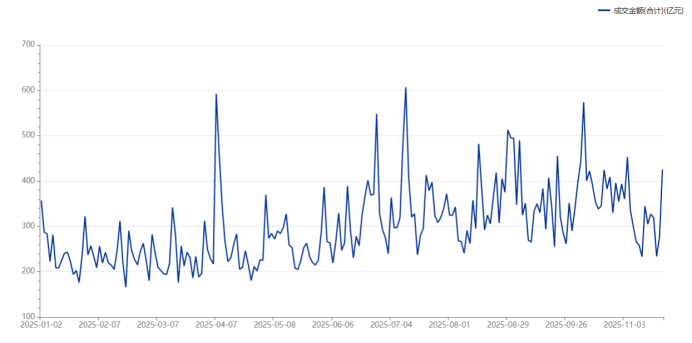 近期,银行板块维持一定热度,从量能数据上看,其今11月20日成交总额达425.15亿元,较昨日(276.78亿元)放量148.37亿元,不仅时隔2周重返400亿元上方,同时在整个年内行情中位居第15位。具体个股来看,11月20日共有8只银行股成交额在20亿元以上,分别为中国银行、民生银行、工商银行、招商银行、农业银行、建设银行、北京银行、交通银行。