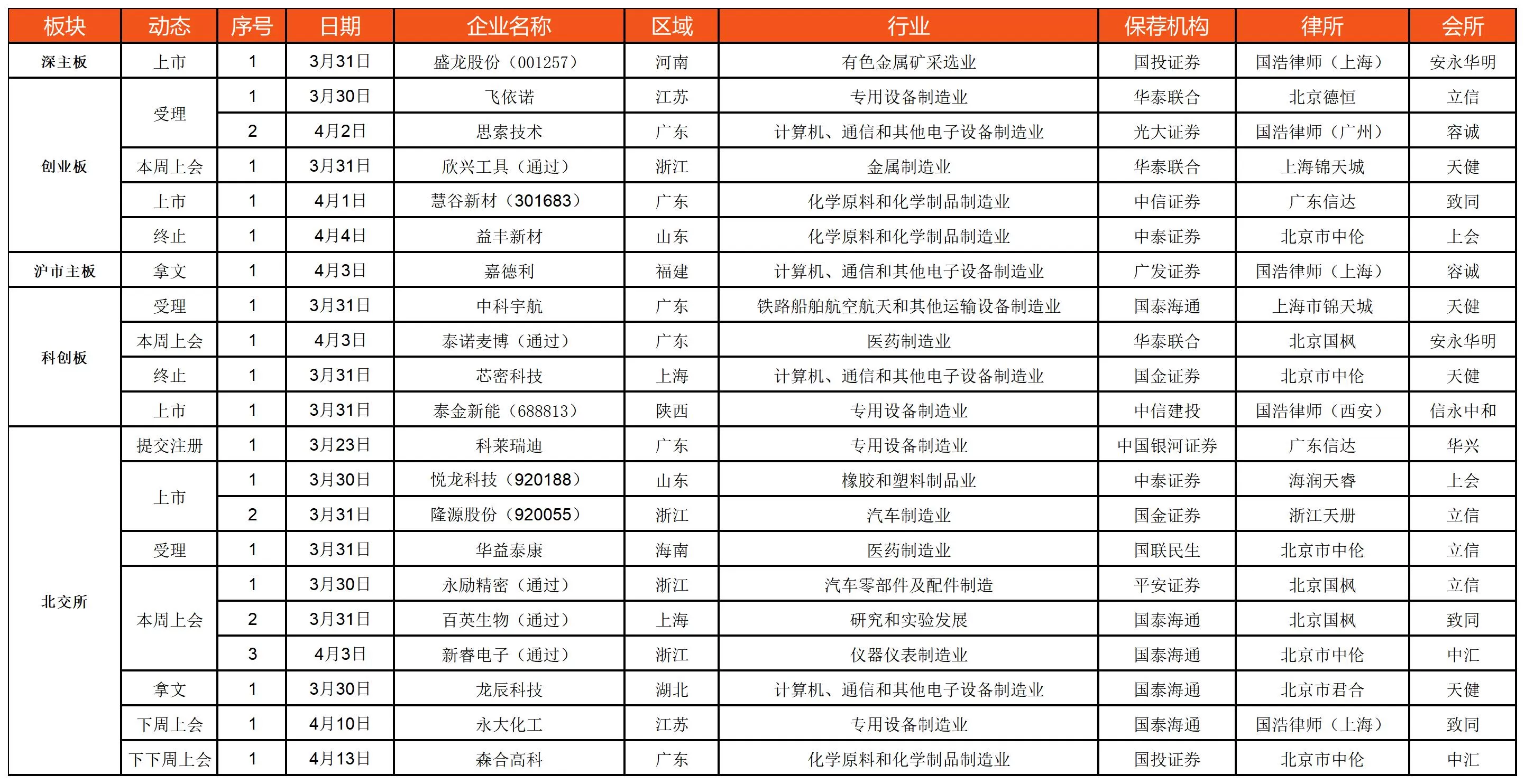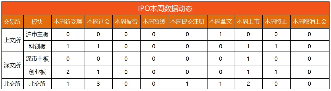 览富财经网统计,2026年3月30日-2026年4月4日,4家企业受理,2家企业成功拿到批文,5家企业首发上会获通过,1家企业提交注册、2家企业终止,5家企业成功上市。下周首发上会企业1家,下下周首发上会企业1家。