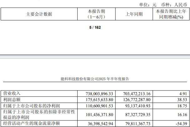 据公司2025年半年报,报告期内,公司实现营业收入7.38亿元,同比增长4.91%;归属于上市公司股东的净利润1.11亿元,同比增长18.75%;扣除非经常性损益后的净利润1.01亿元,同比增长16.16%;经营活动产生的现金流量净额3639.85万元,同比减少54.39%。