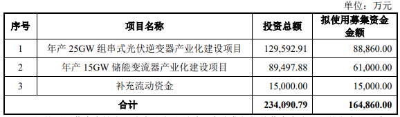 上能电气于9月23日发布的《2023年度向特定对象发行股票募集说明书(修订稿)》显示,本次发行拟募集资金总额不超过164,860.00万元(含本数),在扣除相关发行费用后的募集资金净额将全部用于以下项目:年产25GW组串式光伏逆变器产业化建设项目、年产15GW储能变流器产业化建设项目、补充流动资金。