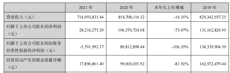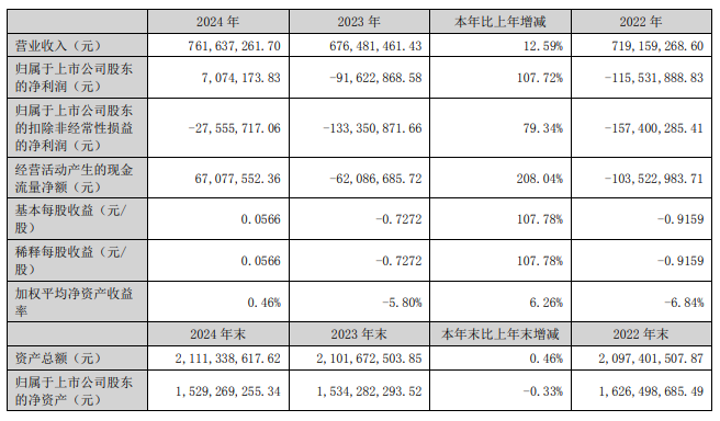 2021年、2022年、2023年、2024年,公司归属于上市公司股东的扣除非经常性损益的净利润分别为-570.20万元、-1.57亿元、-1.33亿元、-2755.57万元。