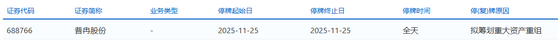 中国经济网北京11月25日讯 上交所网站显示,普冉股份(688766.SH)今日停牌,停牌原因为拟筹划重大资产重组。