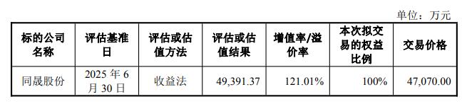 根据中锋评估出具的《资产评估报告》(中锋评报字(2025)第40076号),以2025年6月30日为评估基准日,分别采取资产基础法和收益法对标的资产进行了评估,最终选择收益法评估结果作为评估结论,同晟股份股东全部权益的评估价值为49,391.37万元。以收益法评估结果为参考依据,综合考虑2025年上半年度利润分配2,312.50万元等情况,经交易各方协商确定标的资产的最终交易价格为47,070.00万元。