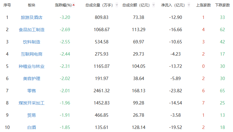 行业板块方面,电机、风电设备、半导体等板块涨幅居前,旅游及酒店、食品加工制造、饮料制造等板块跌幅居前。
