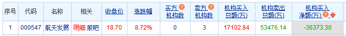 龙虎榜数据显示,卖出航天发展金额最大的前5名中,3家为机构专用席位。经统计,机构席位今日卖出航天发展净额为36373.30万元。