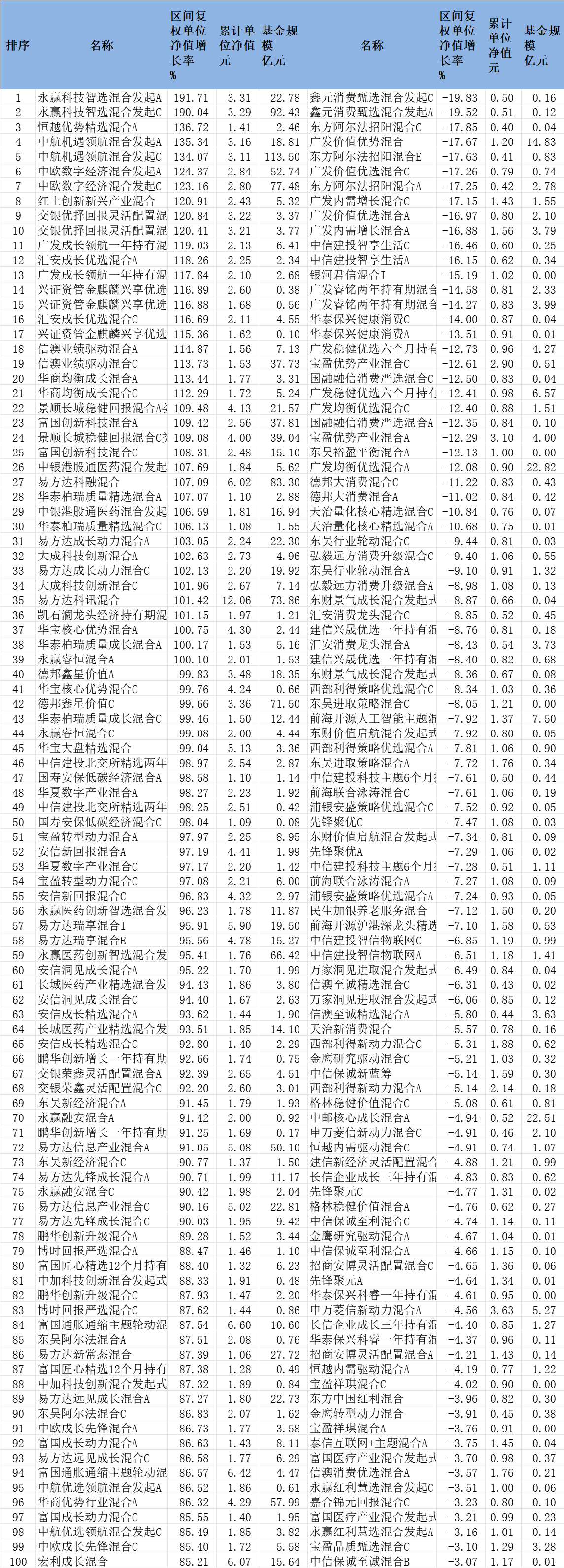 前11月共有10只混合型基金涨幅超过120%。其中,永赢科技智选混合发起A、C分别以191.71%、190.04%的收益率领涨。