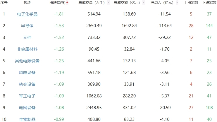 板块方面,贵金属、文化传媒、油气开采及服务等板块涨幅居前,电子化学品、半导体、元件等板块跌幅居前。