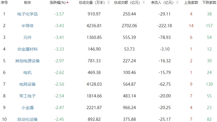 板块方面,白酒、油气开采及服务、贵金属等板块涨幅居前,电子化学品、半导体、元件等板块跌幅居前。