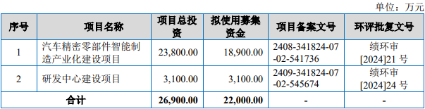 小小科技原拟募集资金22,000.00万元,分别用于汽车精密零部件智能制造产业化建设项目、研发中心建设项目。