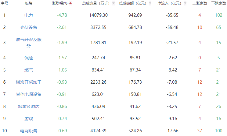 A股市场板块涨跌幅排行