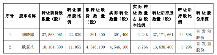 本次权益变动主体为公司控股股东、实际控制人魏晓曦、欧霖杰及其一致行动人魏晓婷。本次权益变动后,实际控制人及其一致行动人合计拥有权益的股份占公司总股本的比例由38.67%下降至32.65%(以下简称“本次权益变动”),权益变动触及5%的整数倍。
