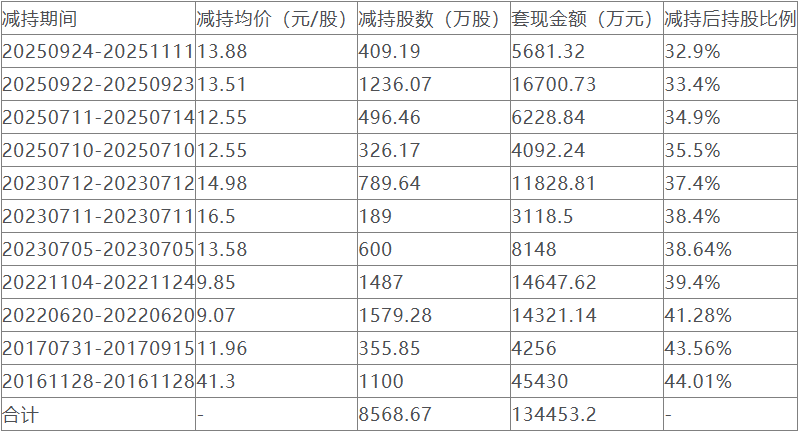 据新浪财经,世宝控股最初持股1.5亿股,占总股本的47.49%。世宝控股从2016年11月28日起,第一次减持浙江世宝股份,迄今为止,累计减持公司股票8568.67万股,累计套现约13.45亿元。