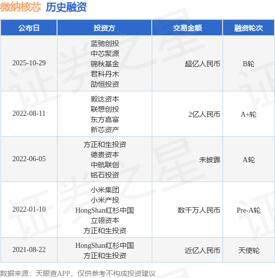 证券之星消息,根据天眼查APP于10月29日公布的信息整理,杭州微纳核芯电子科技有限公司B轮融资,融资额超亿人民币,参与投资的机构包括蓝驰创投,中芯聚源,锦秋基金,君科丹木,劭恒投资。