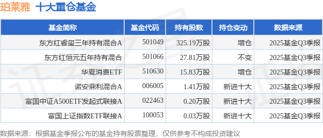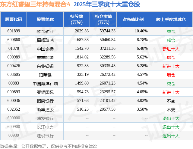 根据2025基金Q3季报公募基金重仓股数据,重仓该股的公募基金共6家,其中持有数量最多的公募基金为东方红资产管理的东方红睿玺三年持有混合A。东方红睿玺三年持有混合A目前规模为57.3亿元,最新净值0.9085(11月3日),较上一交易日上涨0.74%,近一年上涨15.5%。该公募基金现任基金经理为张伟锋。张伟锋在任的基金产品包括:东方红恒元五年持有混合,管理时间为2024年6月1日至今,期间收益率为14.03%。