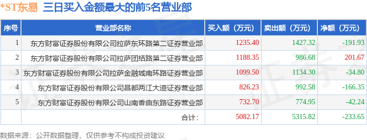 证券之星消息,沪深交易所2025年11月5日公布的交易公开信息显示,*ST东易(002713)因连续三个交易日内,涨幅偏离值累计达到12%的ST证券、*ST证券和未完成股改证券登上龙虎榜。此次是近5个交易日内第2次上榜。