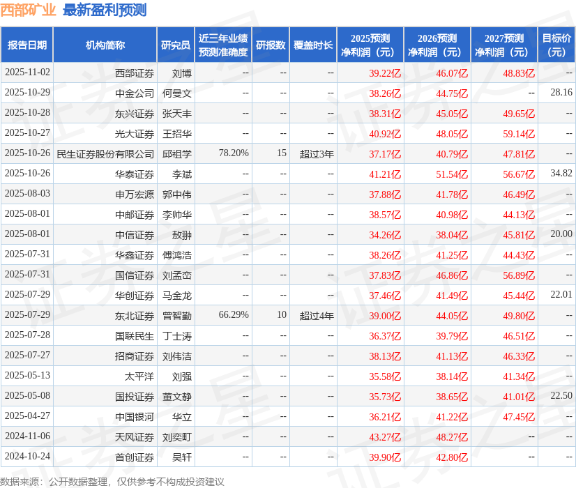 证券之星消息,2025年11月12日西部矿业(601168)发布公告称公司于2025年11月11日接受机构调研,东方财富证券、西安豹亚基金管理有限公司、深圳滨利投资有限公司参与。