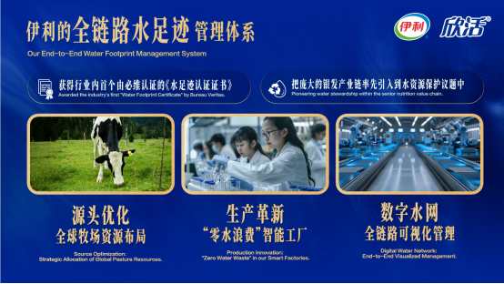 在此次大会期间,全新升级发布的《伊利欣活中老年奶粉》是伊利集团在双碳控制领域的探索结晶之一。据统计,中国60岁以上人口已超2.8亿,对专业化健康解决方案的需求与日俱增。伊利欣活通过整合全球优质资源,为中老年人量身打造精准营养配方:添加中式养生食材,依托高钙高蛋白、0蔗糖的精准营养配方,并特别添加自研菌株BL-99活性益生菌,满足银发群体特殊营养需求,成为中老年营养健康领域的信赖之选。在牧场源头,企业依托全球水资源压力地图科学选址,推广节水型饲料种植;在生产环节,打造“零水浪费”智能工厂,水资源循环利用率高达95%;在数字化管理层面,构建完整的LCA水足迹评估体系,实现全链路可视化管控,形成从源头到终端的绿色闭环。