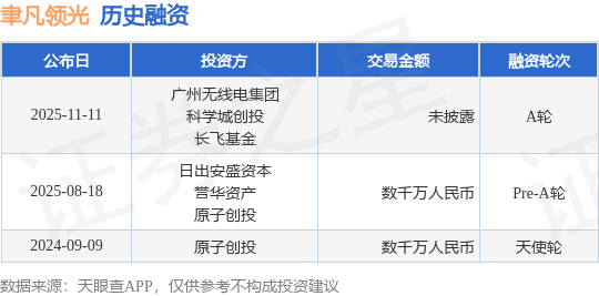证券之星消息,根据天眼查APP于11月11日公布的信息整理,上海聿凡领光通信有限公司A轮融资,融资额未披露,参与投资的机构包括广州无线电集团,科学城创投,长飞基金。