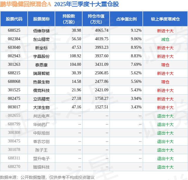 根据2025基金Q3季报公募基金重仓股数据,重仓该股的公募基金共1家,其中持有数量最多的公募基金为鹏华基金的鹏华稳健回报混合A。鹏华稳健回报混合A目前规模为3.27亿元,最新净值1.6827(11月20日),较上一交易日下跌1.4%,近一年上涨46.06%。该公募基金现任基金经理为胡颖。胡颖在任的基金产品包括:鹏华高质量增长混合A,管理时间为2021年12月11日至今,期间收益率为6.78%。