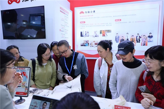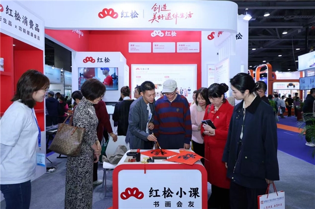 随着养老需求从物质保障延伸至精神满足,退休人群对文化学习、社交表达的需求日益凸显。红松集团紧扣这一趋势,以“兴趣+社区”为核心,通过红松APP构建一站式银发生活平台,覆盖学习、社交、分享等多重场景。展会现场,红松小课的书法与国画展区尤为热闹,老师现场创作教学,不少学员专程前来交流,亲身感受线上线下融合的学习体验。