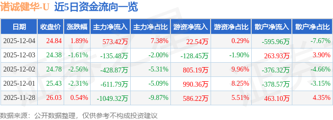 证券之星消息,截至2025年12月4日收盘,诺诚健华(688428)报收于24.84元,上涨1.89%,换手率1.16%,成交量3.13万手,成交额7773.89万元。