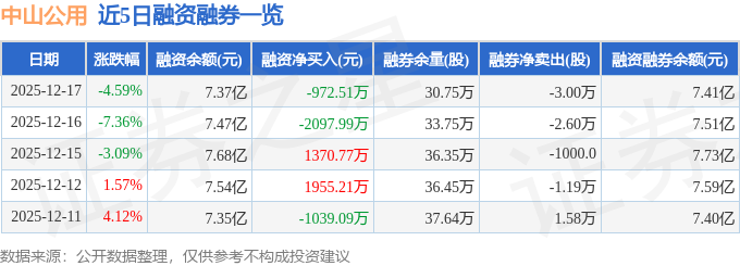 中山公用融资融券信息显示,融资方面,当日融资买入9030.01万元,融资偿还1.0亿元,融资净偿还972.51万元。融券方面,融券卖出7300.0股,融券偿还3.73万股,融券余量30.75万股,融券余额358.24万元。融资融券余额7.41亿元。