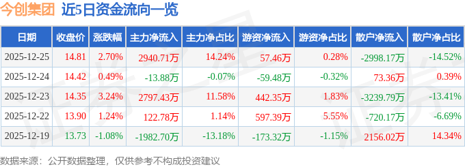 12月25日的资金流向数据方面,主力资金净流入2940.71万元,占总成交额14.24%,游资资金净流入57.46万元,占总成交额0.28%,散户资金净流出2998.17万元,占总成交额14.52%。