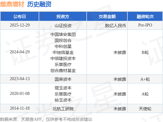 证券之星消息,根据天眼查APP于12月29日公布的信息整理,北京煜鼎增材制造研究院股份有限公司Pre-IPO融资,融资额数亿人民币,参与投资的机构包括山证投资。