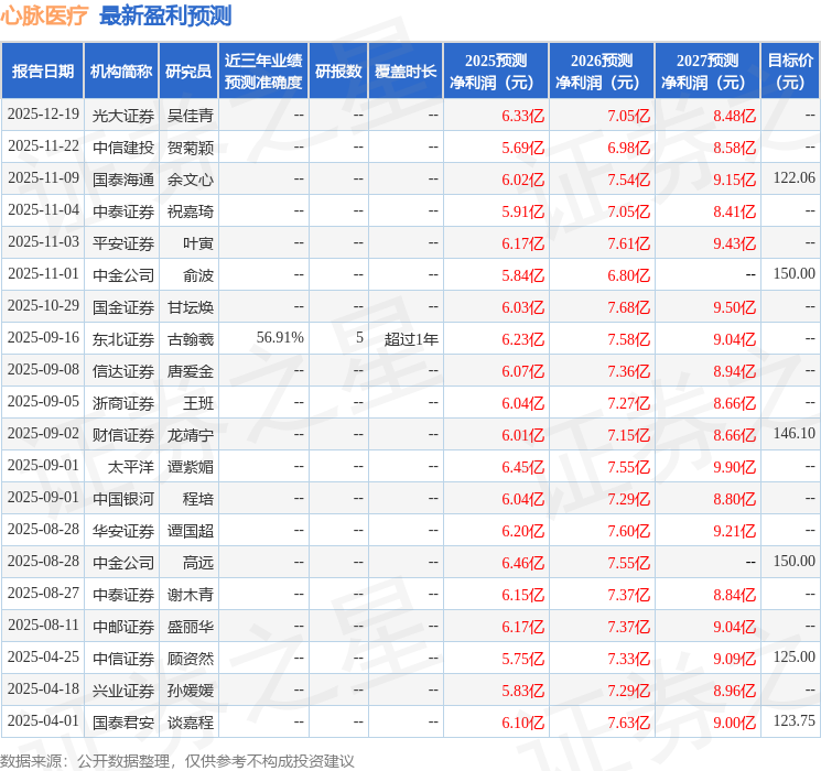 最新盈利预测明细如下: