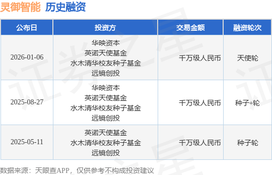 证券之星消息,根据天眼查APP于1月6日公布的信息整理,北京灵御智能科技有限公司天使轮融资,融资额千万级人民币,参与投资的机构包括华映资本,英诺天使基金,水木清华校友种子基金,远镜创投。
