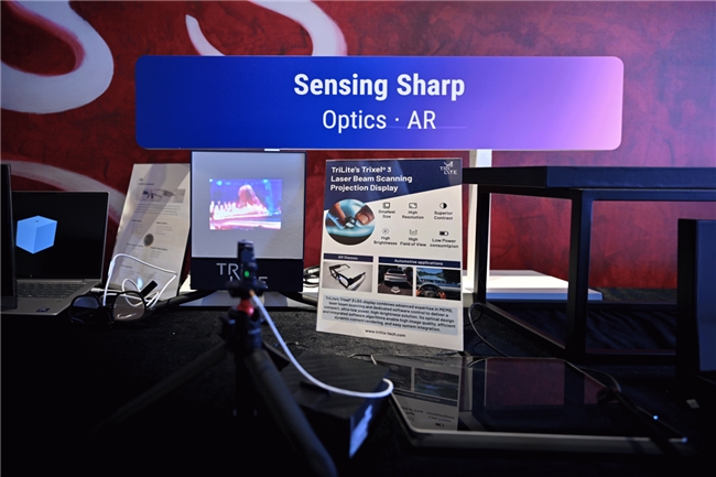 光学领域的布局进一步完善了瑞声科技的全栈能力。基于此前对业界领先的光波导技术公司Dispelix的战略收购,瑞声科技此次展出的高性能衍射光波导解决方案,实现了轻量化设计与广视场、高清晰度的完美平衡,为AR眼镜带来体验升级。配套的电致变色技术可根据环境光线智能调节镜片透光率,有效提升AR设备的户外可视性与佩戴舒适度。展台现场,沉浸式的观影眼镜Demo、直观演绎了从光学显示、智能声场到自适应交互的端到端解决方案,标志着瑞声科技已形成“感知+光学”的深度融合生态。