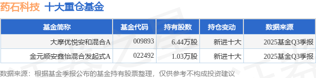 根据2025基金Q3季报公募基金重仓股数据,重仓该股的公募基金共2家,其中持有数量最多的公募基金为摩根士丹利基金的大摩优悦安和混合A。大摩优悦安和混合A目前规模为0.3亿元,最新净值0.7199(1月9日),较上一交易日上涨1.54%,近一年上涨29.06%。该公募基金现任基金经理为赵伟捷。赵伟捷在任的基金产品包括:大摩品质生活精选股票A,管理时间为2024年12月2日至今,期间收益率为46.16%。