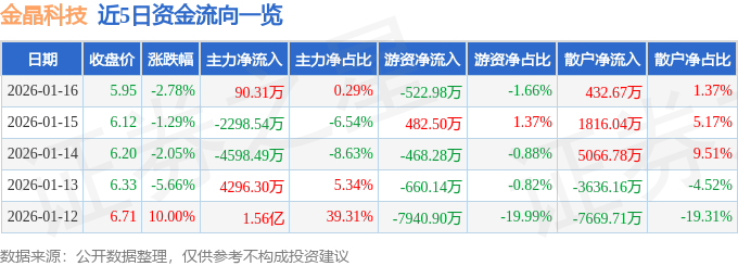 1月16日的资金流向数据方面,主力资金净流入90.31万元,占总成交额0.29%,游资资金净流出522.98万元,占总成交额1.66%,散户资金净流入432.67万元,占总成交额1.37%。