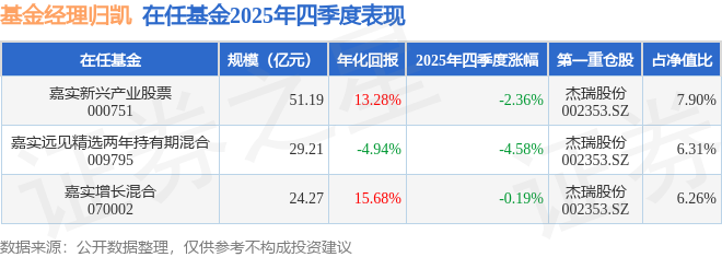 证券之星消息,截止2025年四季度末,基金经理归凯旗下共管理3只基金,本季度表现最佳的为嘉实增长混合(070002),季度净值跌0.19%。