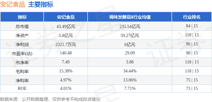 该股主要指标及行业内排名如下: