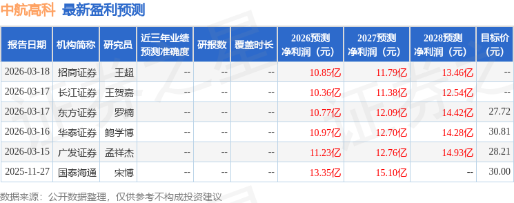中航高科(600862) 事件:公司发布2025年年度报告,2025年1-12月实现营业收入50.08亿元,较上年同期下降1.27%;归属于上市公司股东的净利润10.31亿元,较上年同期下降10.57%;基本每股收益0.74元,较上年同期下降10.84%。 材料主业小幅下降,市场领域加速拓展。报告期内,公司航空新材料业务实现营业收入49.38亿元,较上年同期下降0.63%;归属于上市公司股东的净利润10.88亿元,较上年同期下降10.81%。其中,航空工业复材实现营业收入46.96亿元,同比下降1.45%;净利润10.65亿元,同比下降10.13%。优材百慕实现营业收入2.14亿元,同比增长4.93%;净利润0.37亿元,同比增长7.54%。深圳轻快世界实现营业收入0.25亿元,净利润-0.14亿元。报告期内,航空工业复材实现新一代T800级及以上碳纤维预浸料及预浸丝束产品产量的突破性增长,显著提升先进材料供给能力,为下一代主力产品的规模化量产奠定了坚实基础;优材百慕积极开拓国内外民航市场,民航市场年度订单金额增长迅速,完成了多个型号飞机刹车零部件的取证工作;深圳轻快世界积极拓展多领域市场,在低空经济领域新增核心客户13家,成为28家eVTOL企业核心供应商,低空飞行器预浸料市场占有率达80%,同时推动多类新材料跨界融合应用,在3C、新能源汽车、防护、海洋船舶等领域加速拓展。 研发投入持续增长,产能布局日趋完善。报告期内,公司持续加大自主创新研发投入,聚焦航空新材料及高端装备领域深化技术攻关,进一步提升科技成果转化效能与产业化水平。公司2025年研发投入2.22亿元,申请专利54项,授权专利23项,截至报告期末累计有效专利335项。报告期内,公司多个产能提升项目取得积极进展:先进航空预浸料生产能力提升项目建设已基本完成,并进入试运营阶段。树脂及构件生产能力提升项目建设工程顺利完工,显著提升了树脂、预浸料等航空复合材料生产能力。民用航空复合材料构件能力提升项目已获备案证明,完成规划初审与方案设计招标工作。航空发动机用树脂基复材零组件生产能力建设项目建设工程已全面竣工,并正式具备全面投产运营条件。此外,公司正积极推进民用航空复材大部件装配、通用航空装备复合材料及制品等产业能力布局,为民机业务的持续拓展及低空经济快速发展提供强有力的产能保障。 盈利预测与投资评级:预计公司2026-2028年的净利润为12.49亿元、13.77亿元、14.53亿元,EPS为0.90元、0.99元、1.04元,对应PE为24倍、22倍、21倍,维持“买入”评级。 风险提示:订单增长不及预期;产品销售价格持续下降。