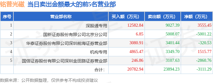 证券小知识:龙虎榜是交易所披露的竞价交易公开信息,现身龙虎榜的个股都是当日最为活跃的个股,是投资者日常重点关注的数据。交易所公布当日买入金额和卖出金额前五名的席位,其中一些席位代表特殊意义,如机构专用席位是指基金专用席位、券商自营专用席位、社保专用席位、券商理财专用席位、保险机构专用席位、保险机构租用席位、QFII专用席位等机构投资者买卖证券的专用通道和席位。深股通专用、沪股通专用为北向资金的交易席位。