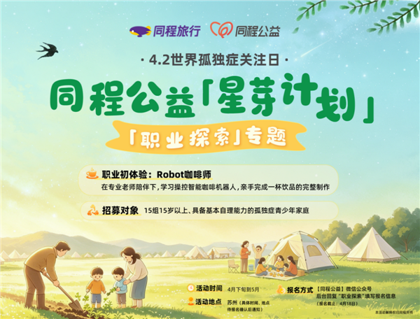 2026年4月2日,第19个世界孤独症关注日,同程旅行宣布其孤独症关爱项目“星芽计划”完成重要升级,并正式推出聚焦青少年群体的“职业探索”专题。在持续开展“农育、美育、体育”自然融合的基础上,项目将依托独特的文旅生态场景,为“星星的孩子”探索职业启蒙与社会融合的新路径,让长期的公益陪伴进一步照进他们对成长的期盼。