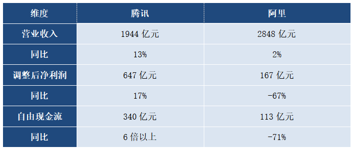 表:腾讯和阿里最新财报核心数据