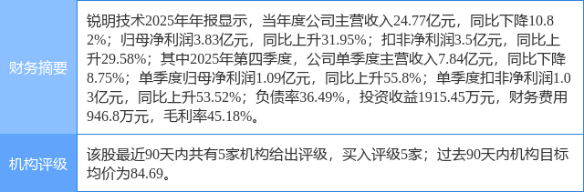 2026年3月29日,华源证券研究员宁柯瑜发布了对锐明技术的研报《商用车AI行业稳定增长,电源业务有望打开第二成长曲线》,该研报对锐明技术给出“买入”评级。研报中预计公司2025-2027年归母净利润分别为3.76/5.11/6.59亿元,同比增速分别为29.70%/35.72%/29.11%,当前股价对应的PE分别为29/22/17倍。我们选取道通科技、经纬恒润、中科创达为可比公司,鉴于公司主业稳定增长,电源业务潜力较大,首次覆盖给予“买入”评级。证券之星数据中心根据近三年发布的研报数据计算,该研报作者对此股的盈利预测准确度为78.6%。