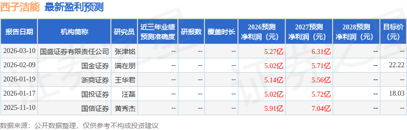 最新盈利预测明细如下: