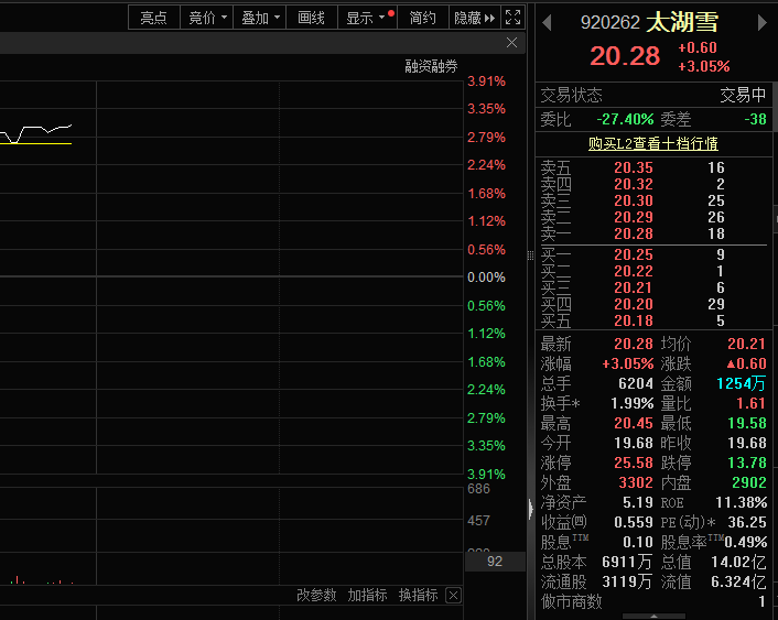 4月10日,太湖雪(920262)股价上涨。截至发稿,股价涨幅超3%。