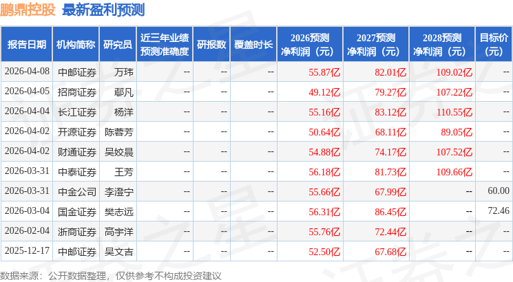 以下是详细的盈利预测信息: