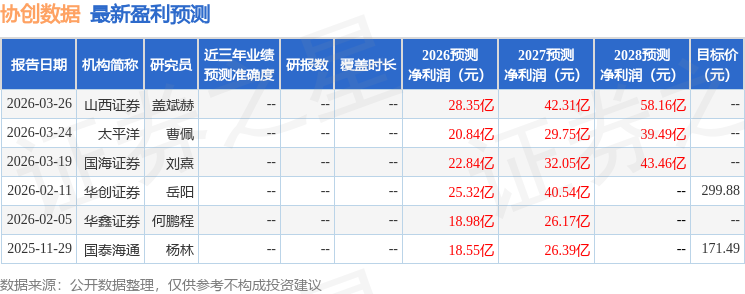 协创数据2025年年报显示,当年度公司主营收入122.36亿元,同比上升65.13%;归母净利润11.64亿元,同比上升68.32%;扣非净利润11.35亿元,同比上升69.07%;其中2025年第四季度,公司单季度主营收入39.05亿元,同比上升93.77%;单季度归母净利润4.66亿元,同比上升246.15%;单季度扣非净利润4.52亿元,同比上升262.02%;负债率81.48%,投资收益529.26万元,财务费用3.17亿元,毛利率19.24%。