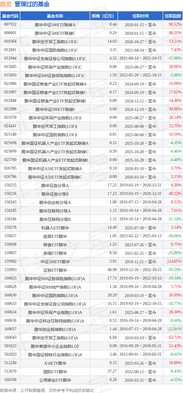 其管理过的公募基金如下:
