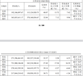 年报数据进一步佐证了这一区域性特征。2025年,公司来自苏南地区的收入为7.52亿元,同比增长17.58%,营收占比超过三成;而省内苏北地区收入同比仅微增2.28%;西南和中部地区的收入更是在低位徘徊,增速分别为-2.27%和0.32%。