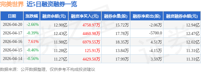 完美世界融资融券信息显示,融资方面,当日融资买入1.89亿元,融资偿还1.41亿元,融资净买入4758.97万元,连续3日净买入累计1.62亿元。融券方面,融券卖出8300.0股,融券偿还2.89万股,融券余量15.72万股,融券余额316.76万元。融资融券余额12.94亿元。